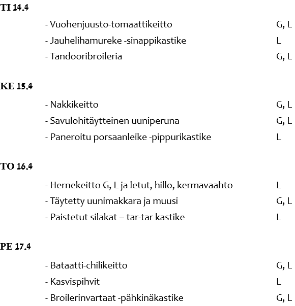 Hintaan sisältyy salaatti, leipä, lämmin pääruoka ja jälkiruoka.